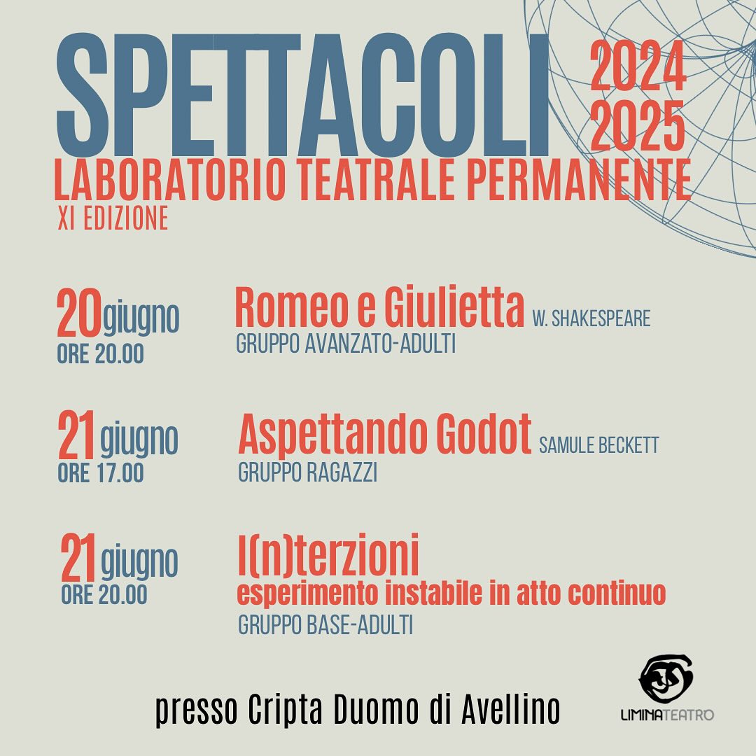Venerdì 20 alle ore 20:00 lo spettacolo "Romeo e Giulietta", sabato 21 giugno alle ore 17:00 "Aspettando Godot" e alle ore 21:00 "Interazioni", presso la Cripta del Duomo.