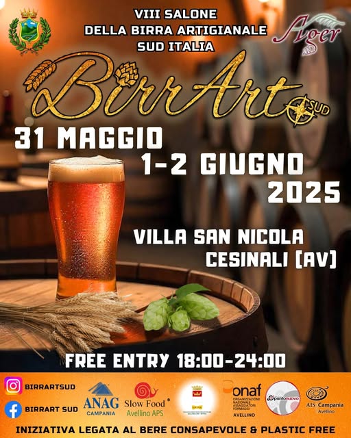 Dal 31 maggio al 2 giugno Villa San Nicola a Cesinali farà da location al salone della birra artigianale con "Birrart Sud" l'evento che fonde enogastronomia e cultura attraverso laboratori creativi, degustazioni esperienziali e scambio d'opinioni con gli esperti del settore.