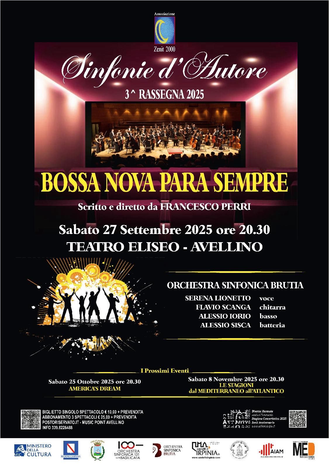 L’Associazione Zenit 2000 di Avellino, ufficialmente riconosciuta dal Ministero della Cultura tra gli enti accreditati nel settore della Concertistica e Produzione Musicale a livello nazionale, rilancia la propria Stagione 2025 con il prosieguo della III edizione della rassegna “Sinfonie d’Autore”, ospitata ad Avellino, nella struttura dell'Eliseo, sotto la direzione artistica del M° Massimo Testa.
