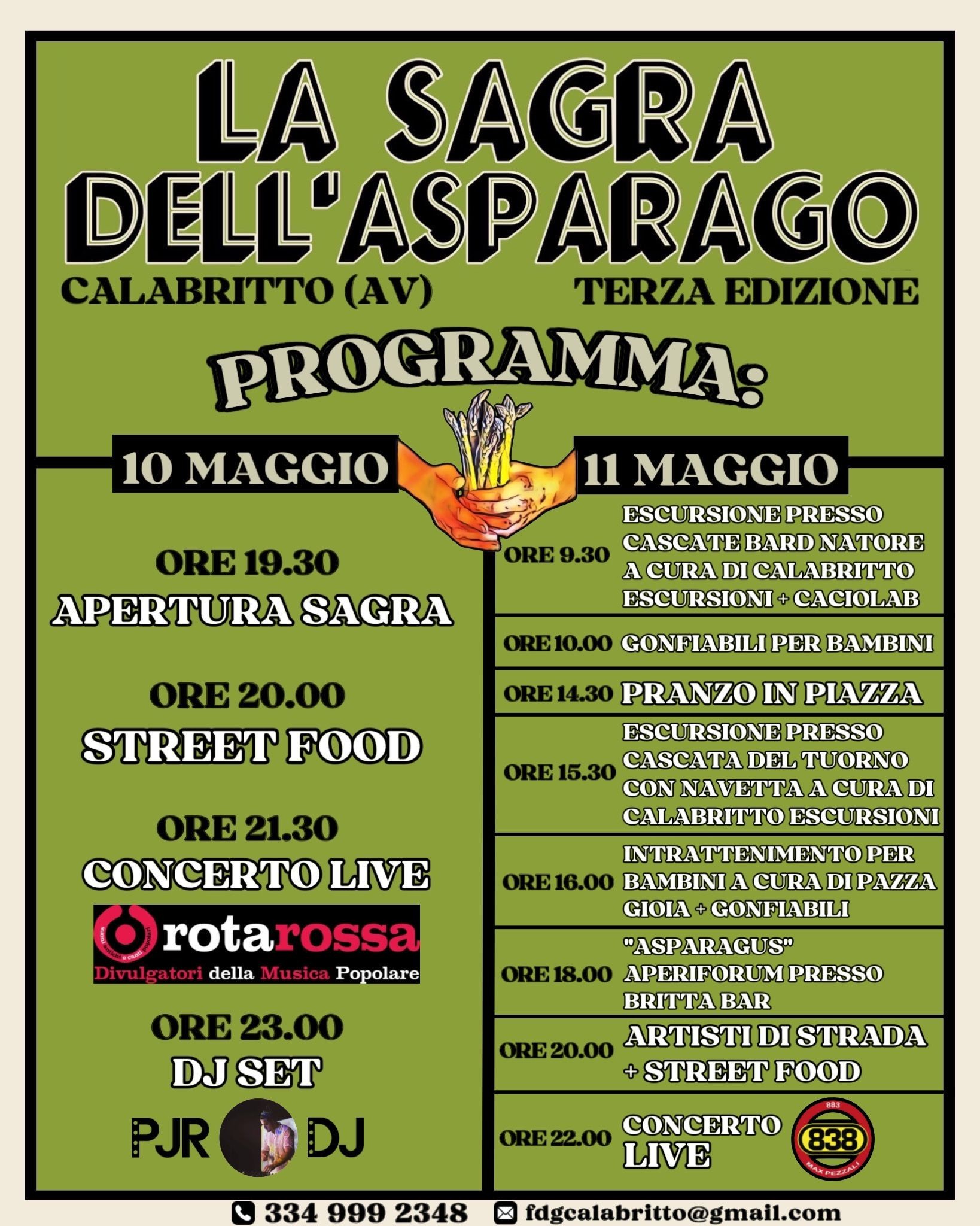 L'evento di tradizione organizzato e curato dal Forum dei Giovani di Calabritto, La Sagra dell'asparago, sabato 10 e domenica 11 maggio.