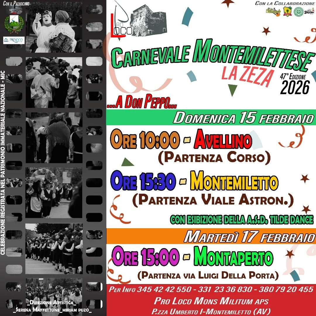 Il Carnevale Montemilettese – La Zeza, giunto alla sua 47ª edizione, torna protagonista con un programma ricco di appuntamenti e con un messaggio forte e identitario: