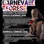 Tra le grandi novità dell’edizione 2026 spicca la presenza di ospiti d’eccezione: direttamente dalla Sardegna arrivano i leggendari Mamuthones e Issohadores di Mamoiada. Il loro rito ancestrale, fatto di passi cadenzati, suoni ipnotici e maschere millenarie, rappresenta uno dei momenti più intensi e suggestivi dell’intera manifestazione. Un incontro straordinario tra tradizioni che arricchisce il Carnevale Teorese di un forte valore antropologico.