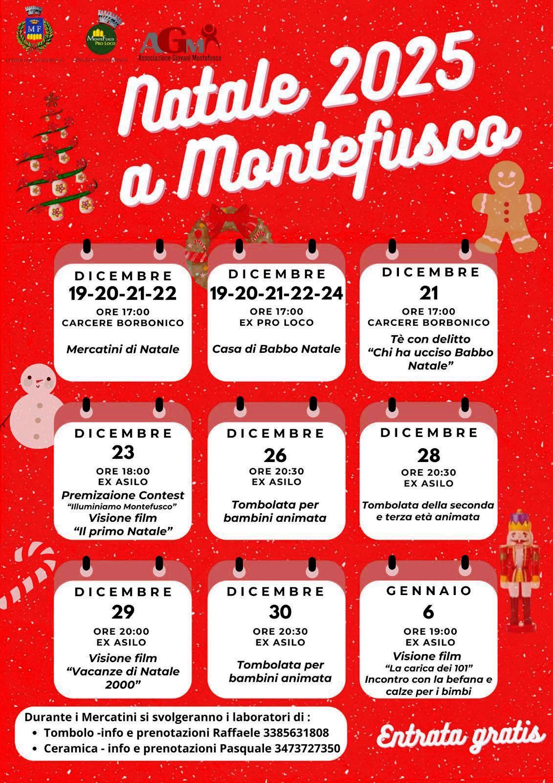 Montefusco si prepara a vivere un Natale ricco di eventi grazie al calendario di iniziative “Natale 2025 a Montefusco”, promosso dal Comune, dalla Pro Loco e dall’Associazione Giovani Montefusco.