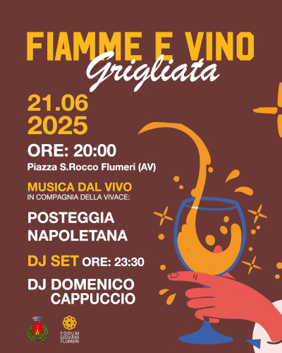 Sabato 21 Giugno a Flumeri "Fiamme e Vino", una serata di divertimento e gusto con grigliata e musica dal vivo. Organizzato dal Forum dei Giovani del paese ufitano, appuntamento dalle ore 20.00 in Piazza San Rocco.