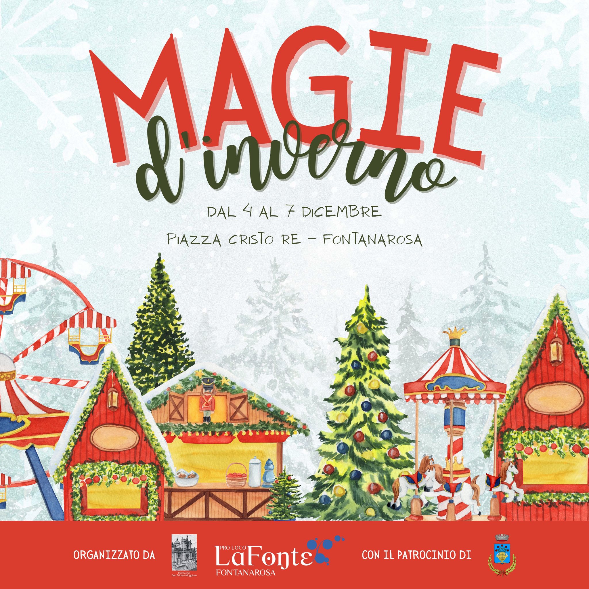 Fontanarosa si tuffa nell’atmosfera dell’evento “Magie d’Inverno”, in programma dal 4 al 7 dicembre in Piazza Cristo Re. Per quattro giorni il cuore del paese si vestirà di luci, musica, profumi natalizi e momenti pensati per coinvolgere grandi e piccoli, trasformando la piazza in un vero villaggio festoso.