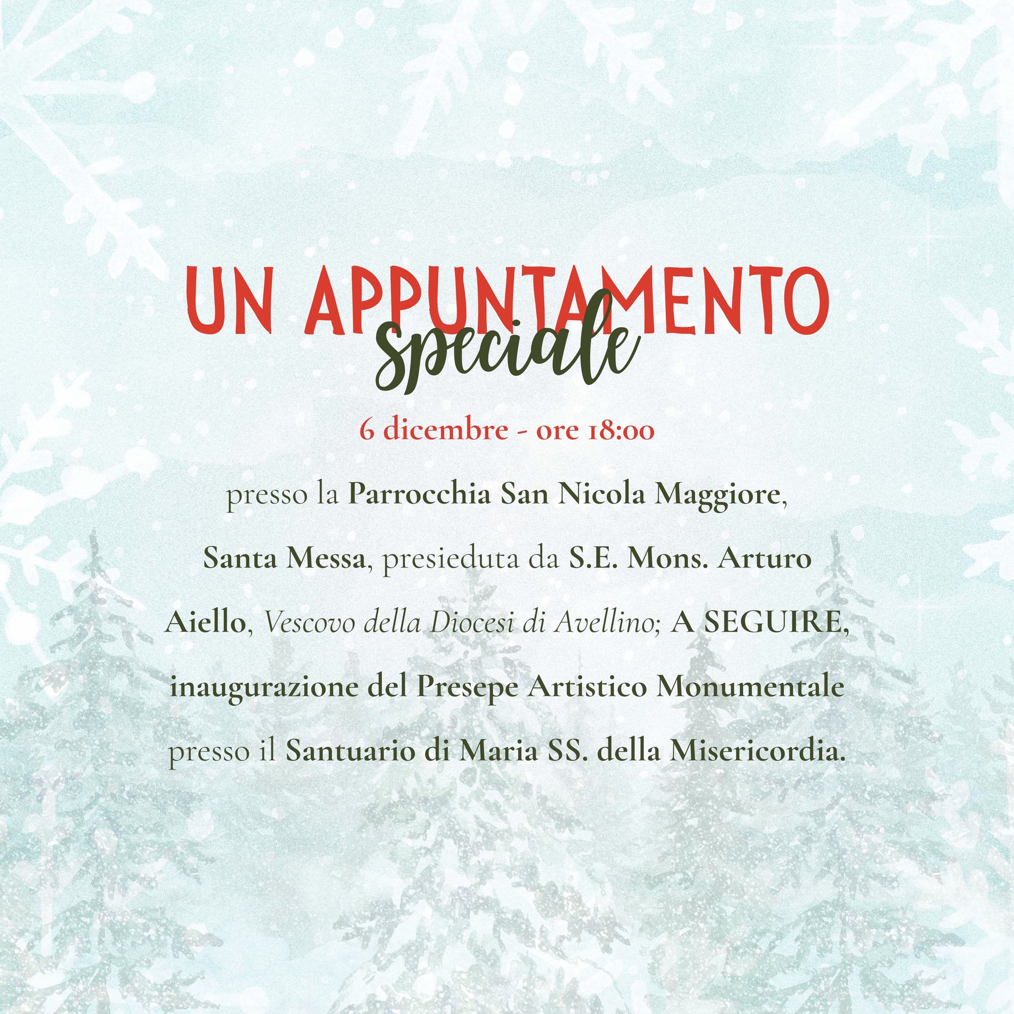 Il 6 dicembre verrà inaugurato il Presepe Artistico Monumentale presso il Santuario di Maria SS. della Misericordia, un appuntamento molto atteso che arricchirà ulteriormente la magia del periodo.