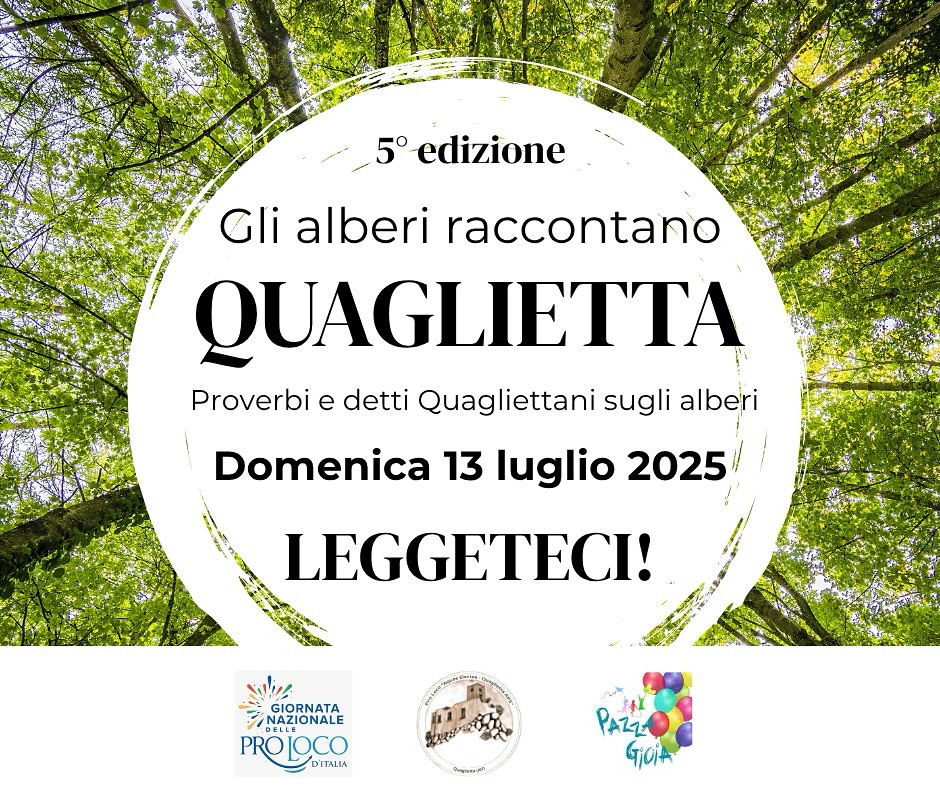 La manifestazione, "Gli alberi raccontano Quaglietta", presentata nella Giornata Nazionale delle Pro Loco e realizzata in collaborazione con Pazza Gioia, è giunta alla quinta edizione ed ha lo scopo di avvicinare diverse generazioni attraverso il ricordo o la conoscenza di proverbi e detti quagliettani ormai in disuso nel linguaggio comune.