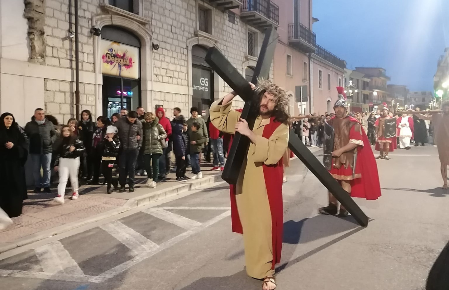 Per la sua ventiduesima edizione, la suggestiva rappresentazione cambia nuovamente scenario: dopo l’edizione dello scorso anno ai Giardini De Curtis, si torna su Corso Vittorio Veneto, con partenza dall’antica Stazione di Posta e successive soste che scandiranno i diversi momenti della Passione di Cristo, fino al simbolico Calvario.