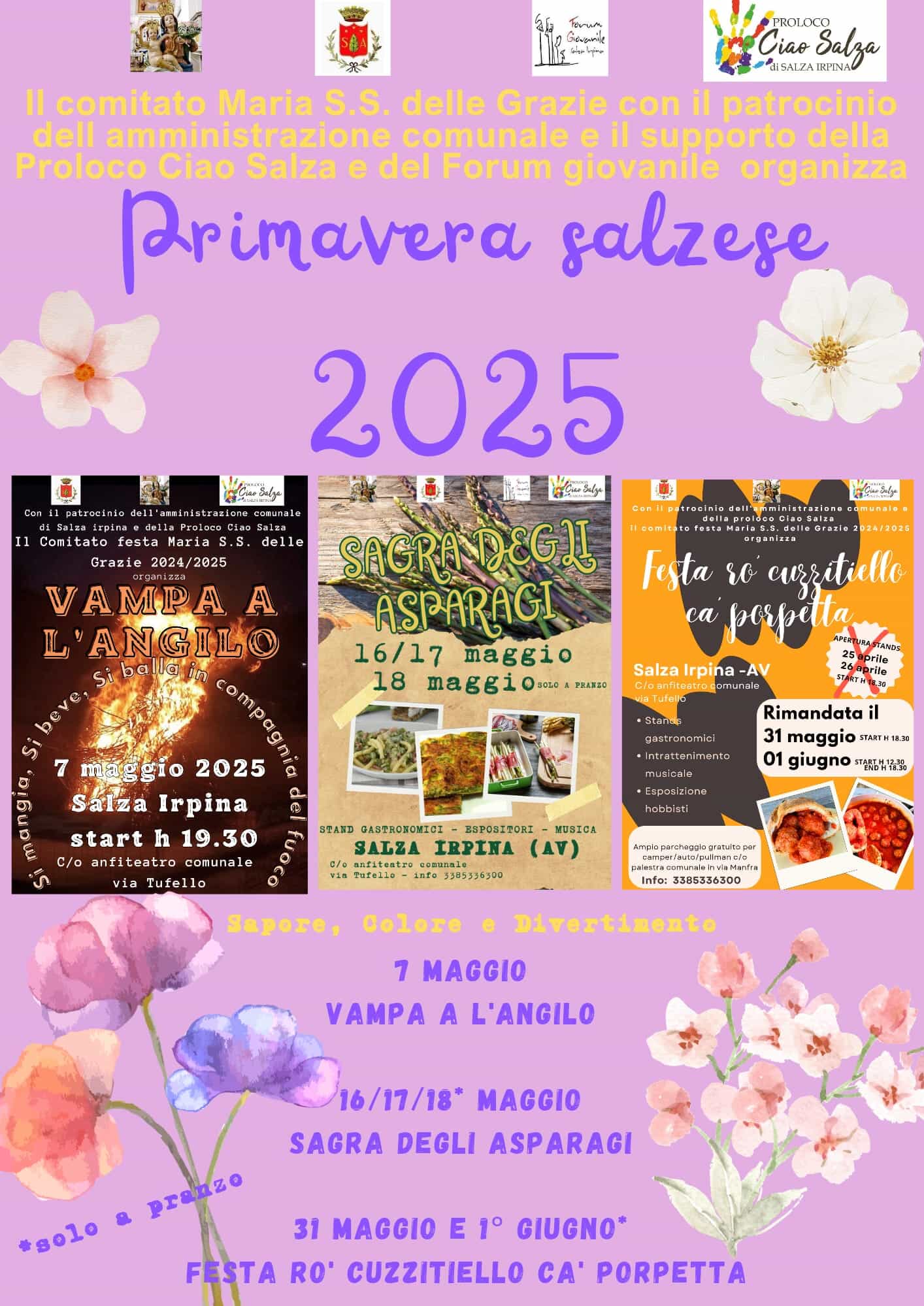 Salza Irpinia si prepara a vivere tre appuntamenti imperdibili tra fuochi, asparagi e il celebre cuzzitiello cà purpetta nel mese di maggio.