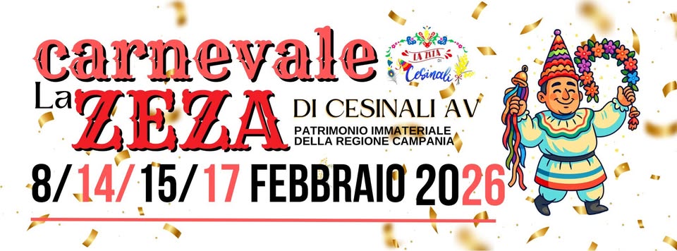 Cesinali si prepara a vivere uno degli appuntamenti più attesi e identitari dell’anno: il Carnevale 2026 con protagonista assoluta La Zeza di Cesinali, riconosciuta come Patrimonio Immateriale della Regione Campania, dall'8 al 17 febbraio.