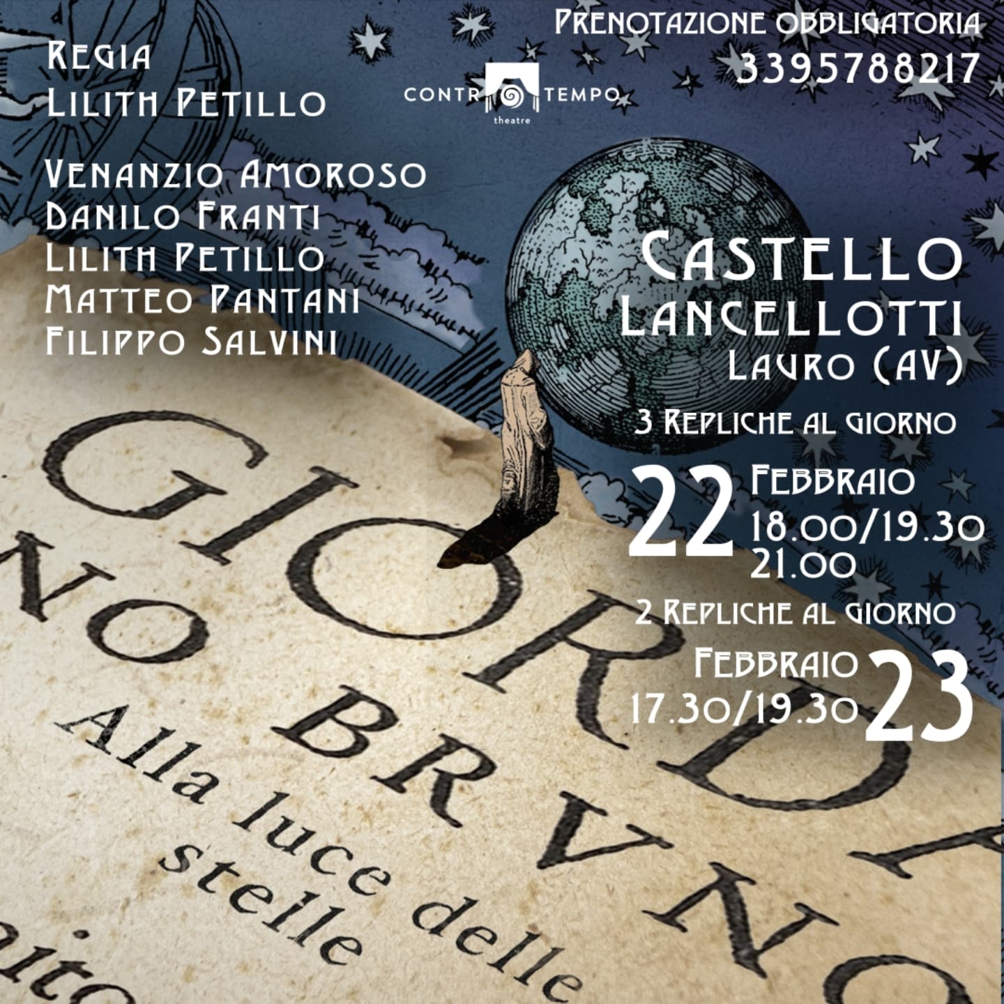La Compagnia "Controtempo Theatre" ritorna al Castello Lancellotti di Lauro con l'emozionante spettacolo "Giordano Bruno. Alla luce delle stelle".