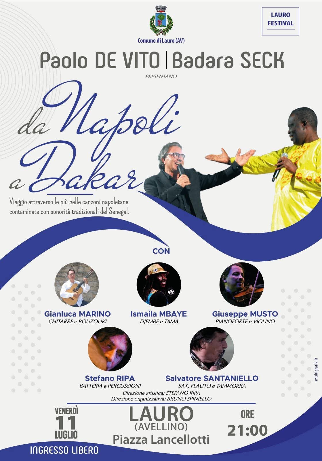 Venerdì 11 Luglio, in Piazza Lancellotti, si terrà "Da Napoli a Dakar", un emozionante viaggio attraverso le più belle canzoni napoletane contaminate con sonorità tradizionali del Senegal.