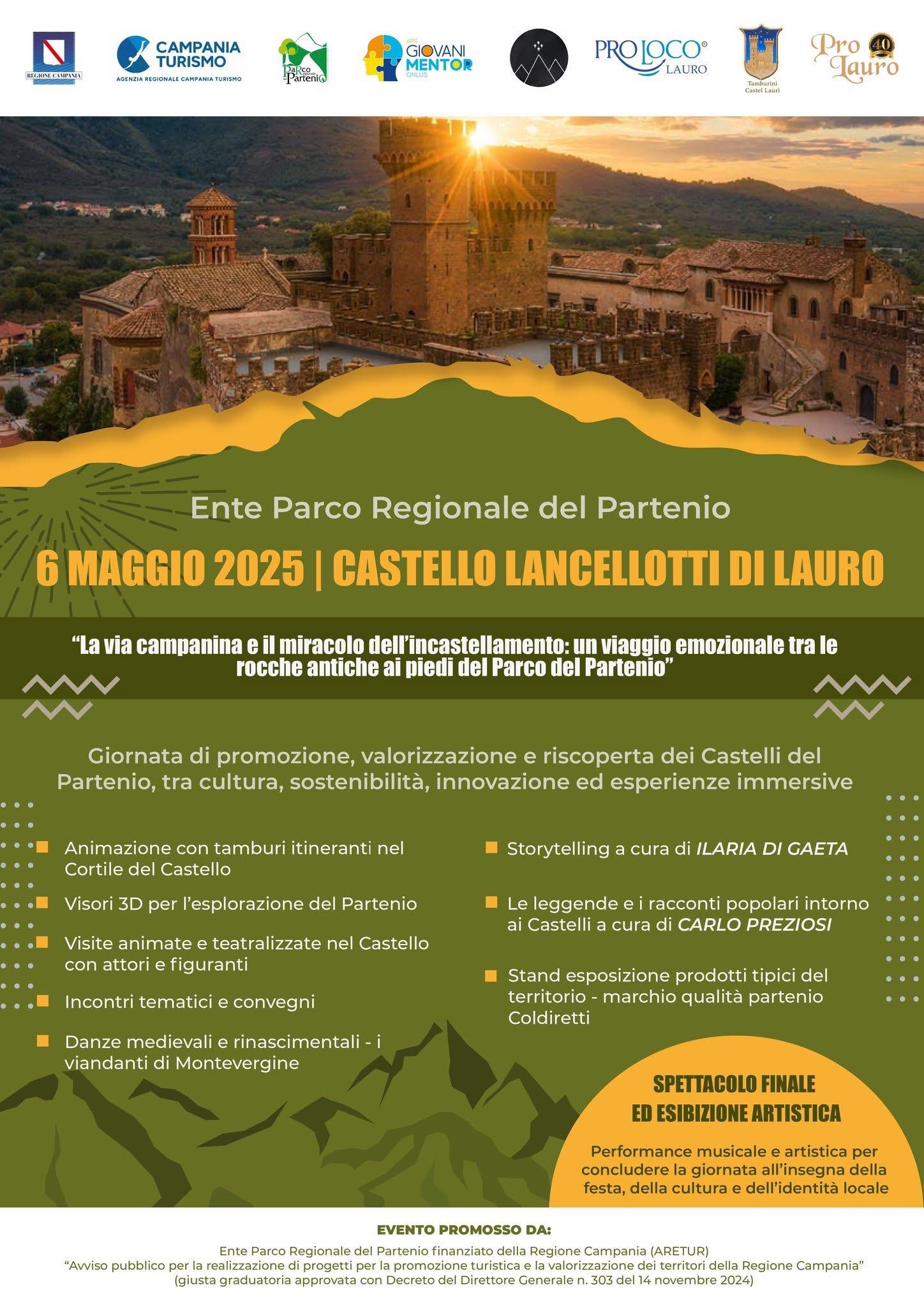 L'Ente Parco Regionale del Partenio, in collaborazione con l'APS Giovani Mentor Onlus, presenta il progetto "La via campanina e il miracolo dell'incastellamento: un viaggio emozionale tra le rocche antiche ai piedi del Parco del Partenio", una giornata di promozione, valorizzazione e riscoperta dei Castelli del Partenio, tra cultura, sostenibilità, innovazione ed esperienze immersive.