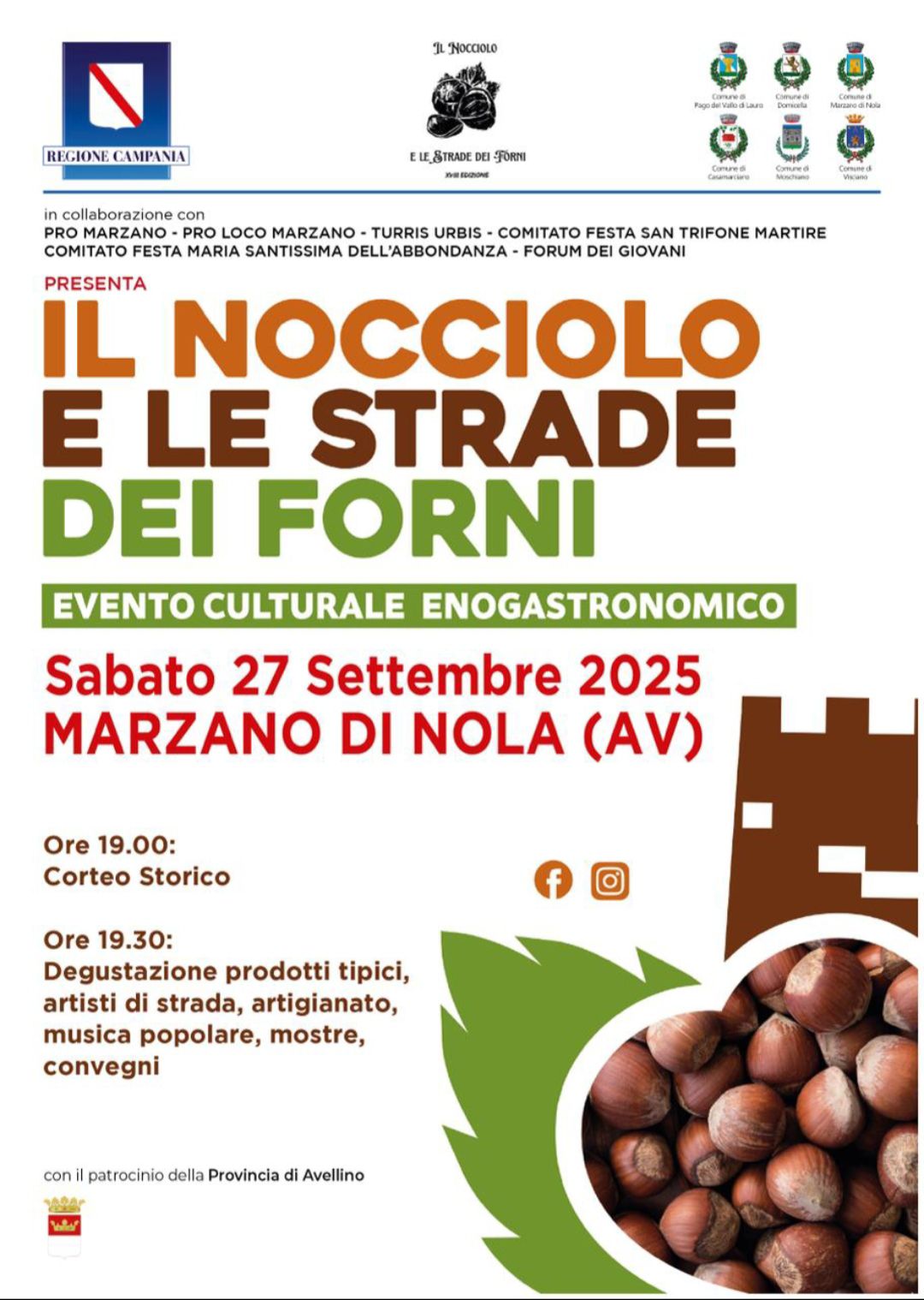 Marzano di Nola  si prepara ad accogliere la XIX edizione della manifestazione Il Nocciolo e le Strade dei Forni, in programma sabato 27 settembre  a partire dalle ore 19:00 nel centro storico del borgo irpino.