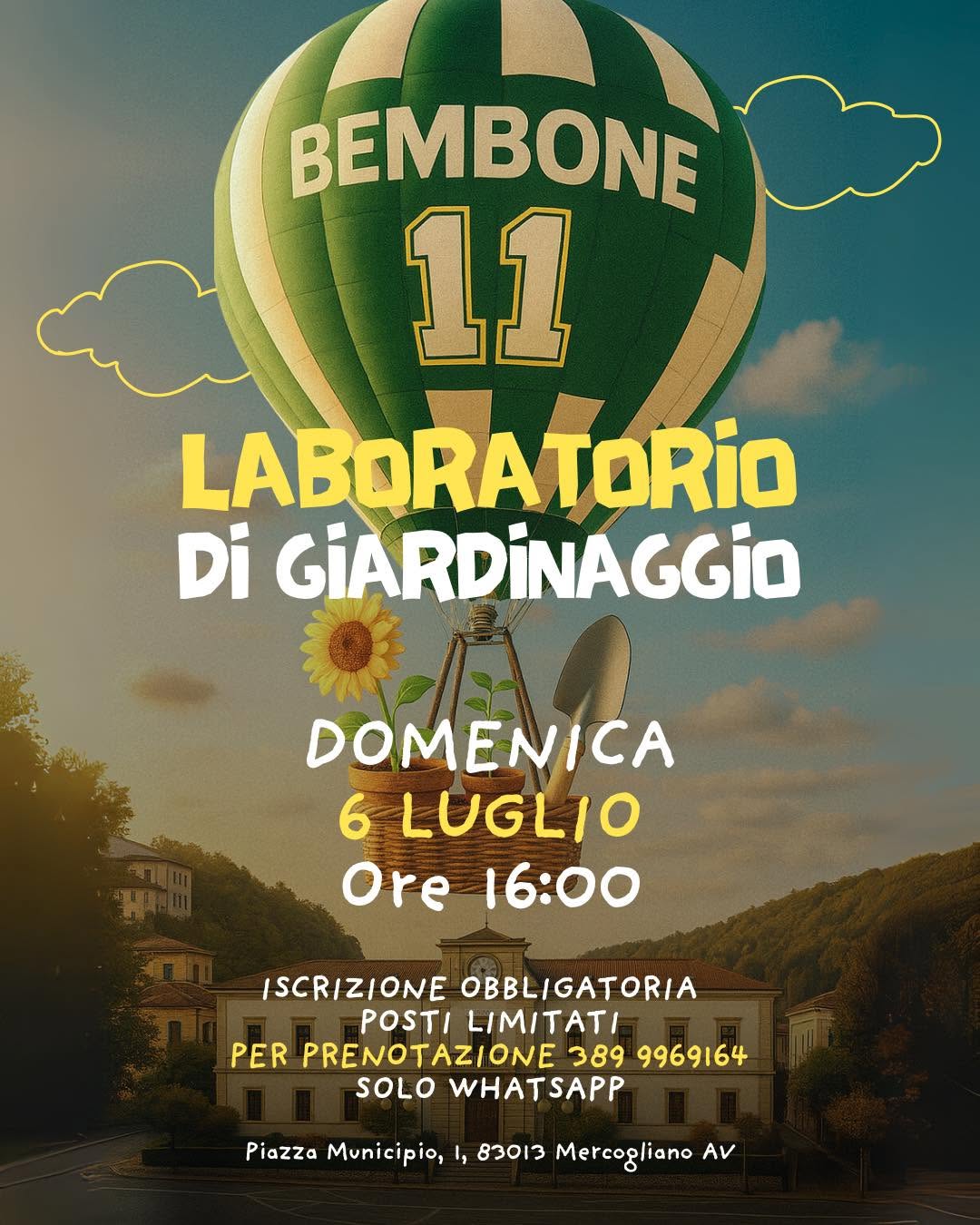 evento libero. Posti limitati per pompieropoli, laboratorio di giardinaggio e mani in pasta, contattare il num 389996916