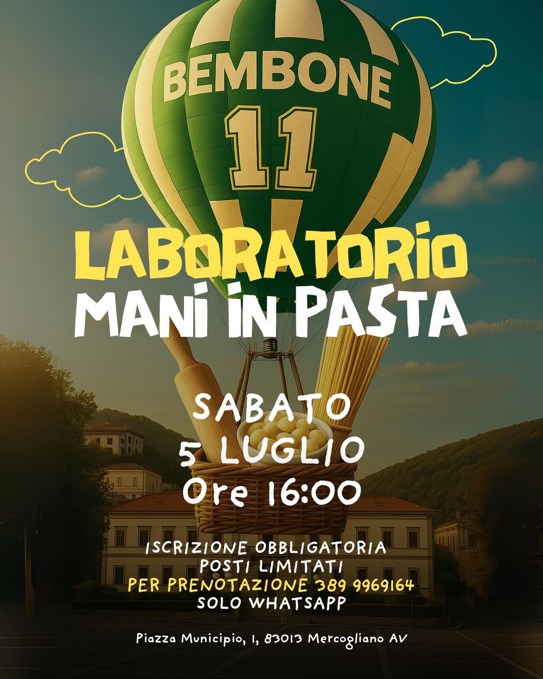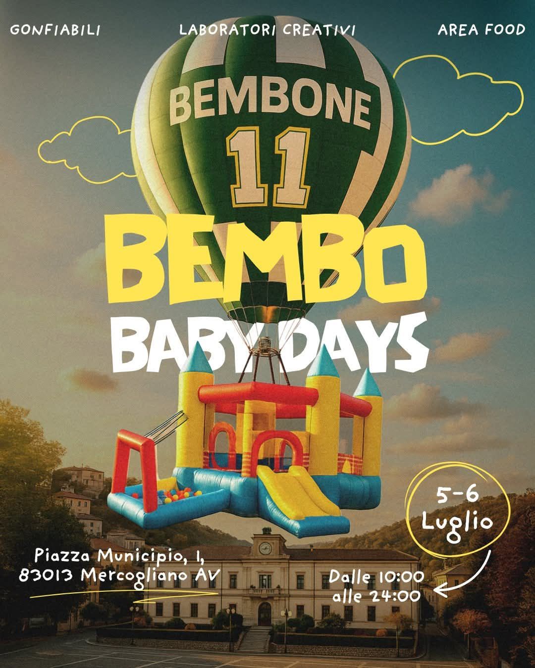 Piazza Municipio a Mercogliano si trasforma in un parco giochi a cielo aperto nelle giornate di sabato 5 e domenica 6 luglio  dalle ore 10:00 alle 24:00 con "Bembo Baby Days".