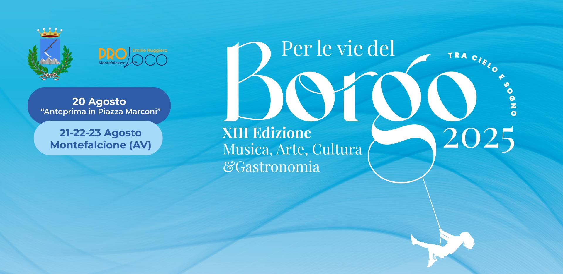 Giunti alla XIII Edizione, torna la tradizionale manifestazione “Per le vie del Borgo … tra cielo e sogno”, organizzata dalla Pro Loco “Emilio Ruggiero” di Montefalcione, con il patrocinio del Ministero del Turismo, Regione Campania, Provincia di Avellino e Comune di Montefalcione.