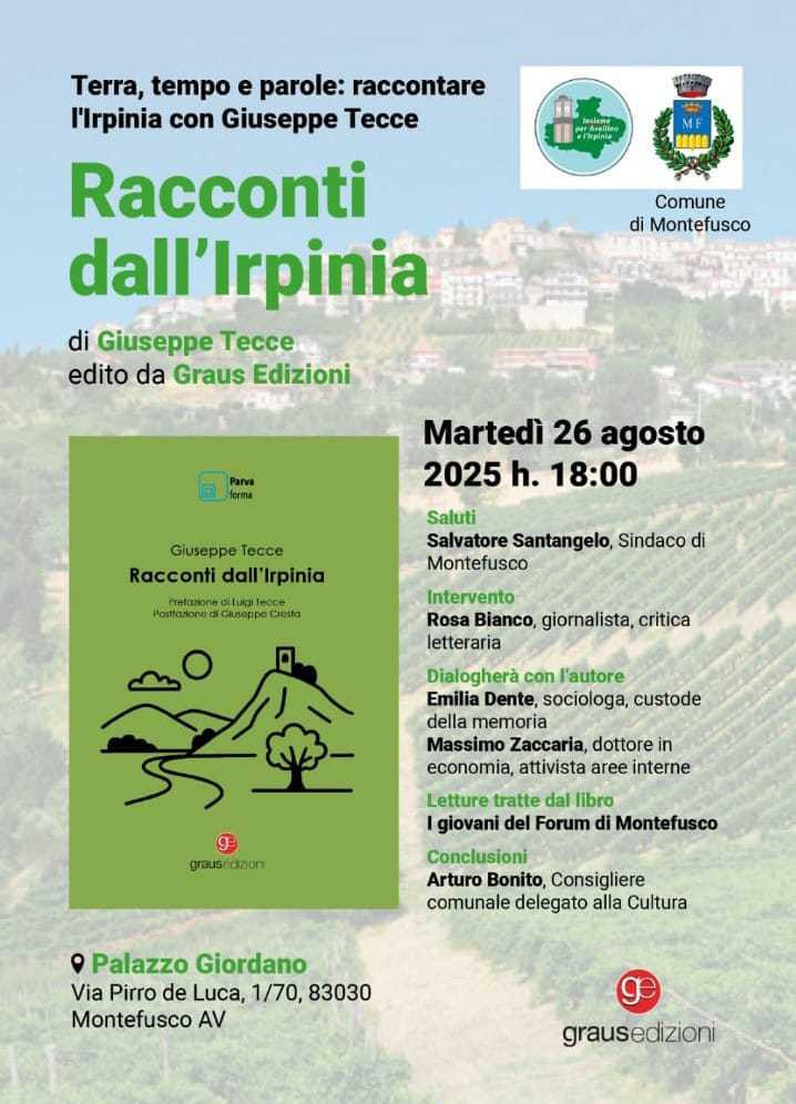 Ci sono luoghi che resistono al logorio della dimenticanza, terre che non si lasciano travolgere dall’anonimato della modernità, ma che continuano a raccontarsi attraverso chi, con sensibilità autentica, ne raccoglie la voce. L’Irpinia è uno di questi luoghi. Non solo una geografia, ma un tessuto di storie, radici, nostalgie e speranze che hanno bisogno di narratori capaci di custodirne l’anima. Giuseppe Tecce con "Racconti dall’Irpinia - Graus Edizioni" si pone come interprete di questo compito: dare parola a una terra che non vuole restare nel silenzio, ma rivendica la forza di continuare a generare identità e progettualità collettiva.