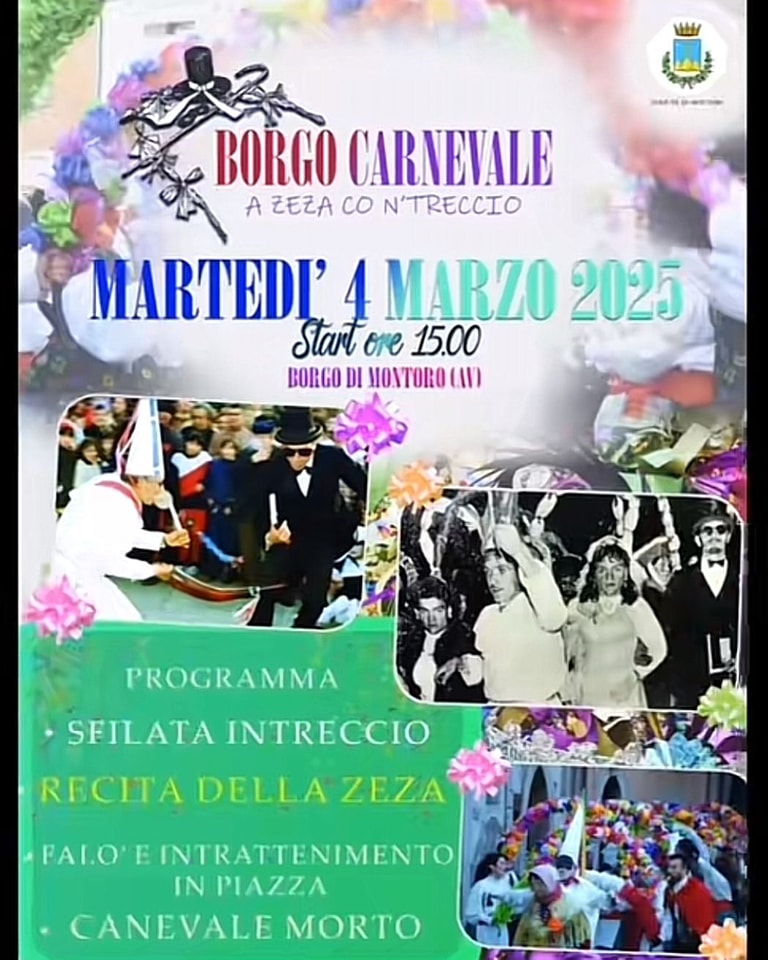 Appuntamento Martedì 4 Marzo, alle ore 15.00, a Borgo di Montoro, per trascorrere una piacevole giornata insieme alle maschere tipiche e ballare a ritmo della tarantella.
