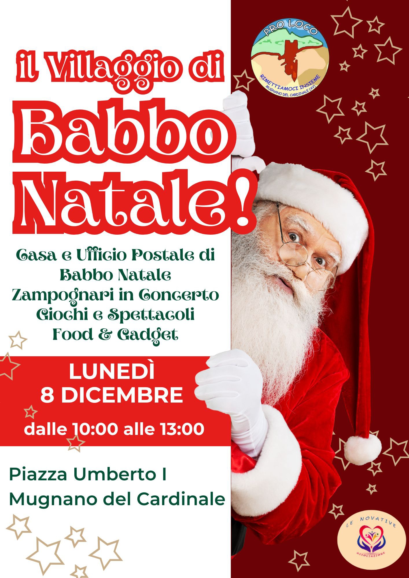 L’atmosfera magica del Natale avvolgerà Mugnano del Cardinale grazie all’arrivo del Villaggio di Babbo Natale, un evento pensato per grandi e piccini che si terrà lunedì 8 dicembre, dalle 10:00 alle 13:00, nella suggestiva cornice di Piazza Umberto I.