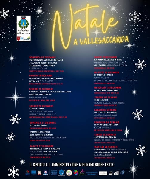 Nel cuore dell’Irpinia, il comune di Vallesaccarda si prepara a vivere la magia delle festività con “Natale a Vallesaccarda”, un ricco cartellone di eventi che anima il paese per tutto il periodo natalizio.