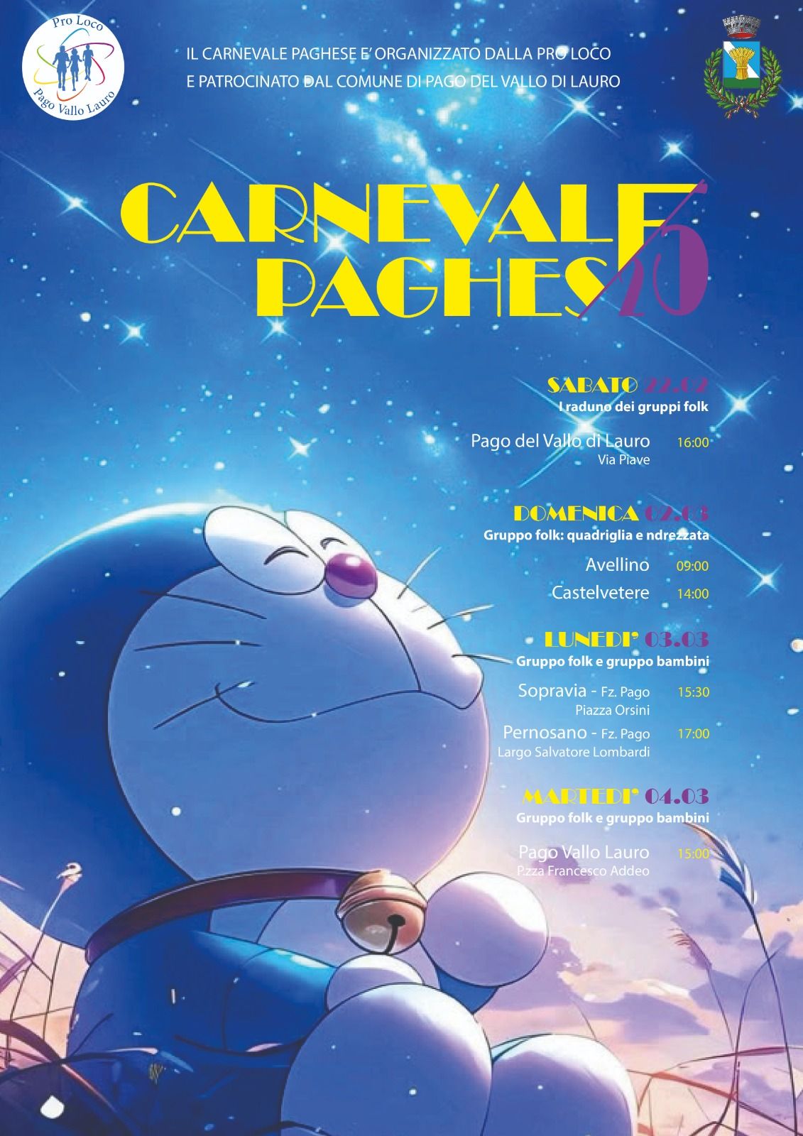 Inoltre, la Pro Loco ha ufficializzato il programma del "Carnevale Paghese 2025", organizzato con il patrocinio del Comune di Pago del Vallo di Lauro.