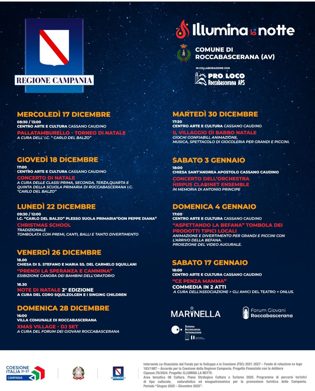Roccabascerana si prepara a vivere un intenso periodo di festa con il ricco calendario di iniziative promosso dal Comune di Roccabascerana in collaborazione con la Pro Loco. Un programma che, tra dicembre e gennaio, coinvolge bambini, famiglie e adulti, valorizzando cultura, tradizioni natalizie e momenti di aggregazione.
