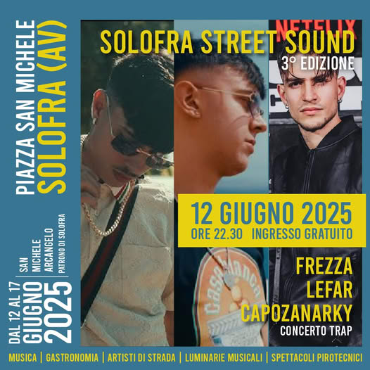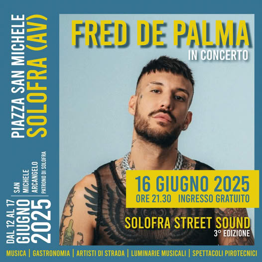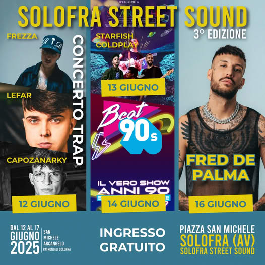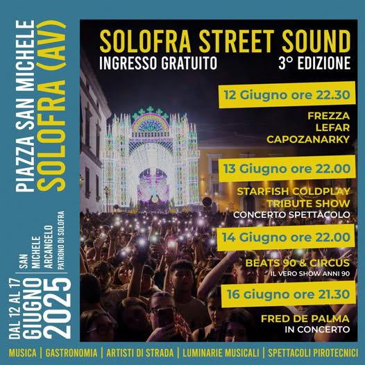 Inoltre spazio anche alla musica con l'attesissimo ritorno della rassegna musicale "Solofra Street Sound" che vedrà l'esibizione di numerosi artisti tra cui il famoso rapper "Fred De Palma".