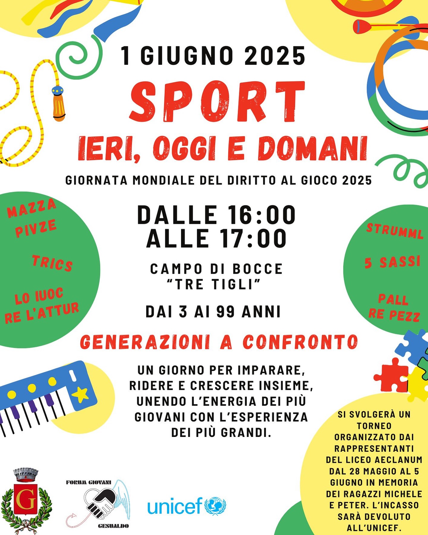 Il Forum dei Giovani di Gesualdo, con il patrocinio del Comune di Gesualdo, organizza un pomeriggio speciale alla riscoperta dei giochi tradizionali.