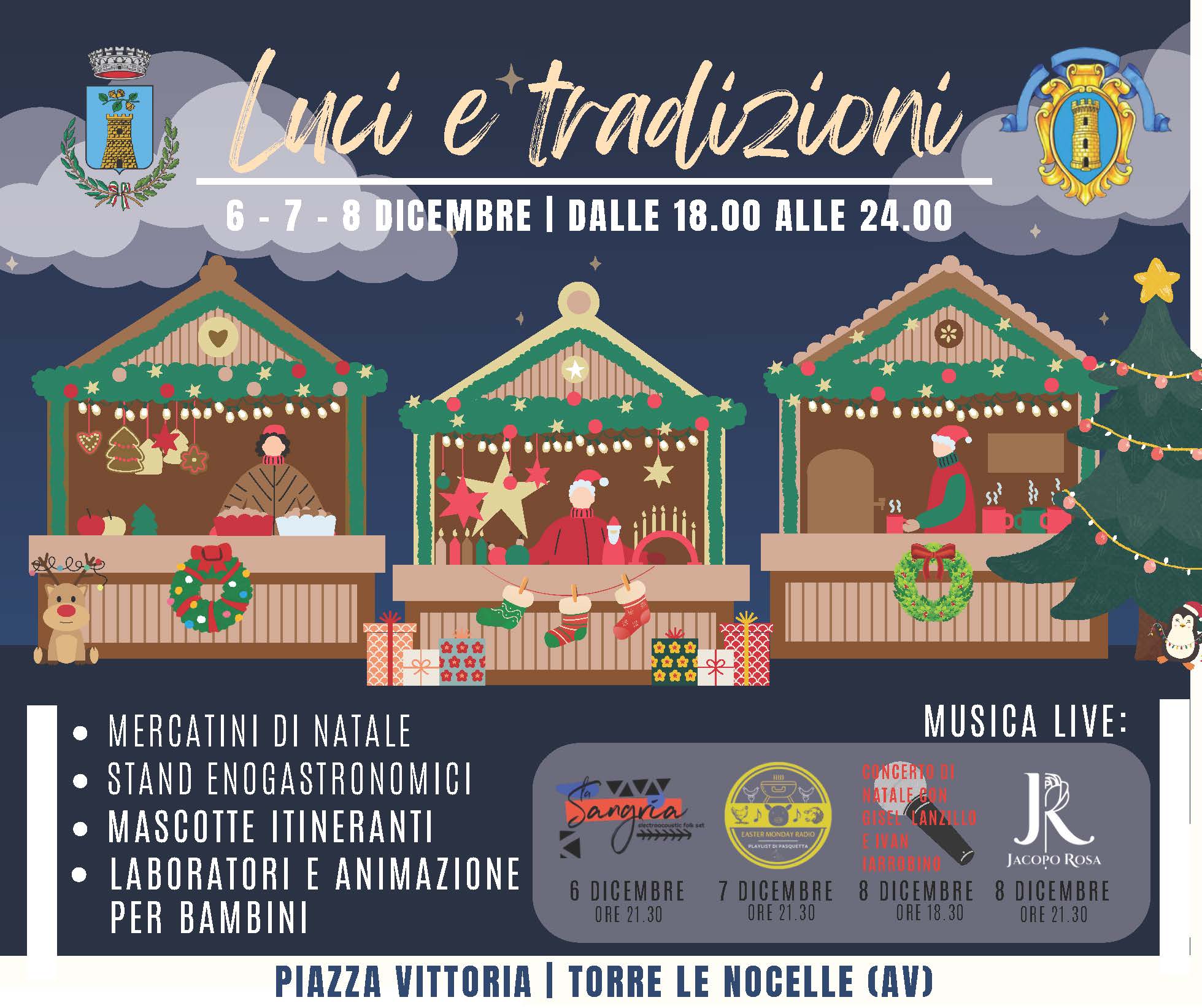 L’Amministrazione Comunale di Torre le Nocelle, in collaborazione con la Pro Loco Torre Le Nocelle APS, presenta l'evento “Luci e Tradizioni” con mercatini, sapori tipici, musica live e momenti speciali per grandi e piccini.