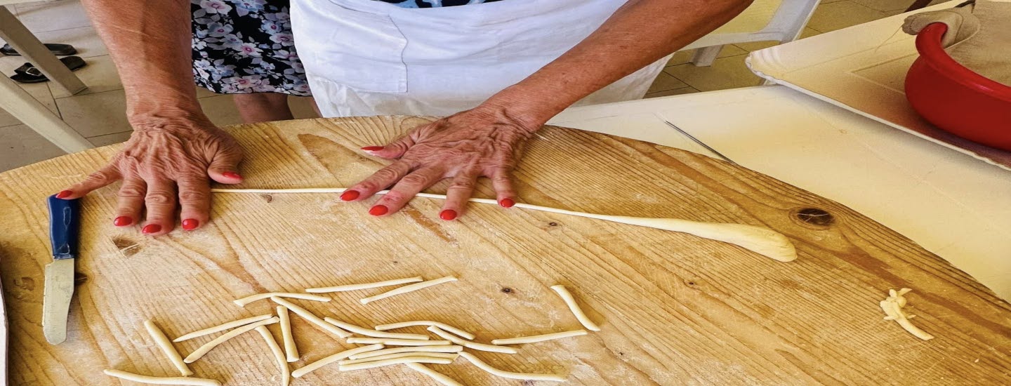 Dietro a un piatto di fusilli c'è una lavorazione dalla storia antica tramandata di generazione in generazione che oltre ad offrire una pietanza semplice e prelibata ha il valore aggiunto dato dall'aggregazione di grandi e piccini nel momento della preparazione, una spianatoia, un ferretto, acqua, farina e profumo di famiglia. Frutto delle terre irpine è il Greco di Tufo che accompagnerà le pietanze preparate.