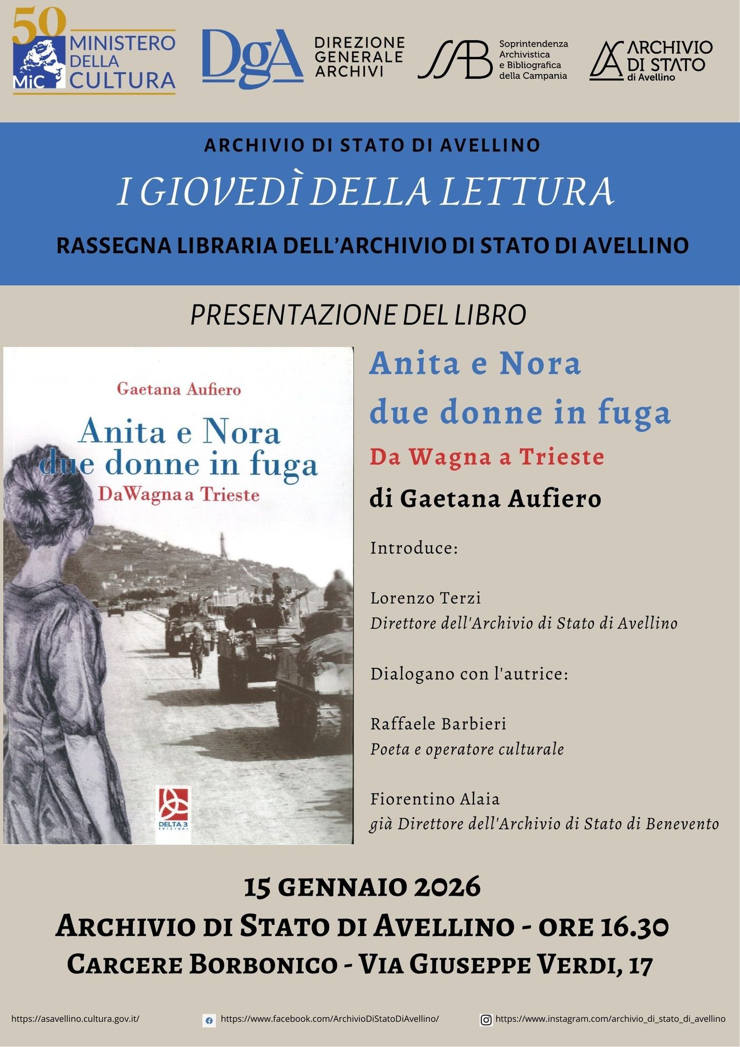 Giovedì 15 gennaio, alle ore 16:30, si terrà un nuovo appuntamento della rassegna libraria dell’Archivio di Stato di Avellino “I giovedì della lettura”.
