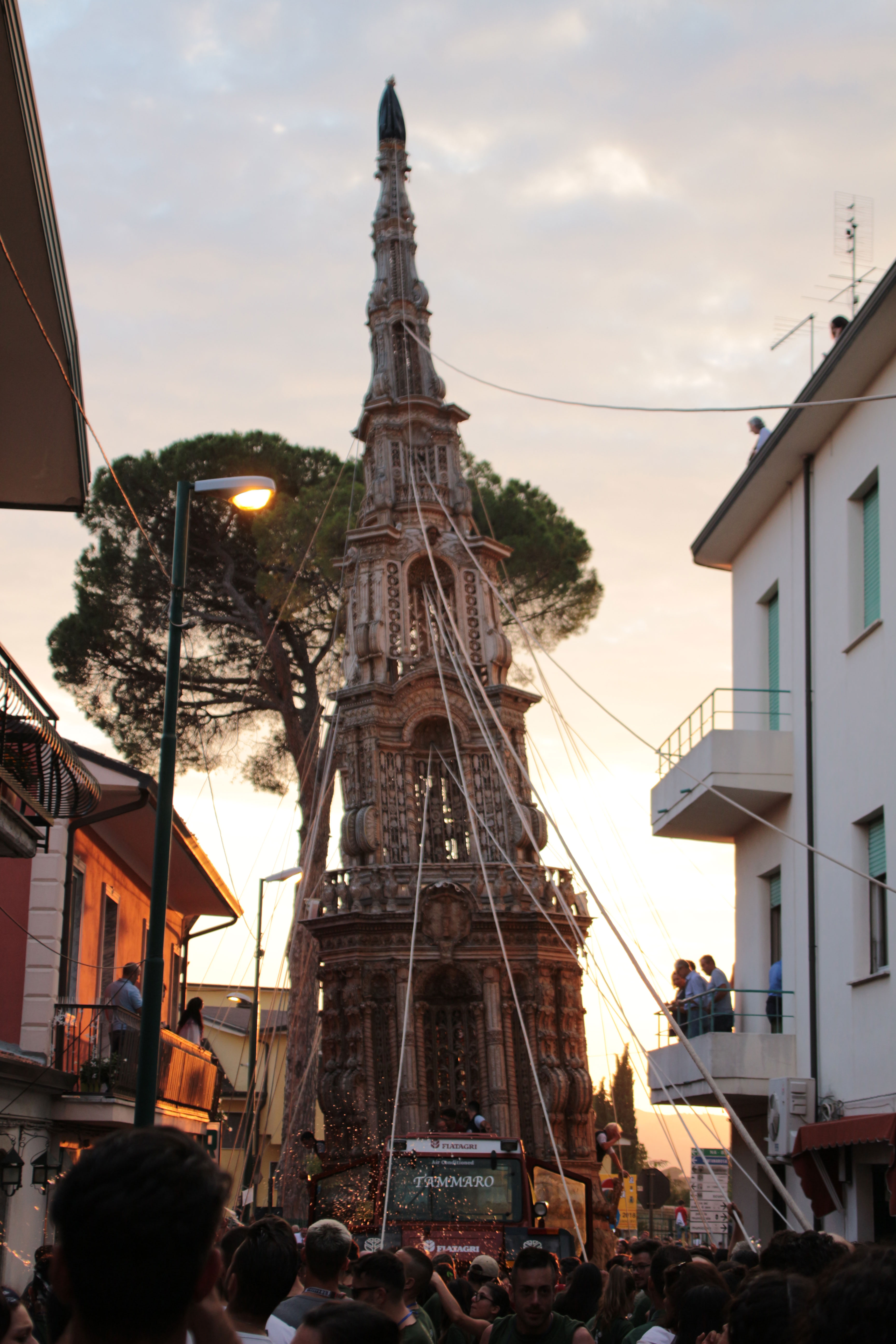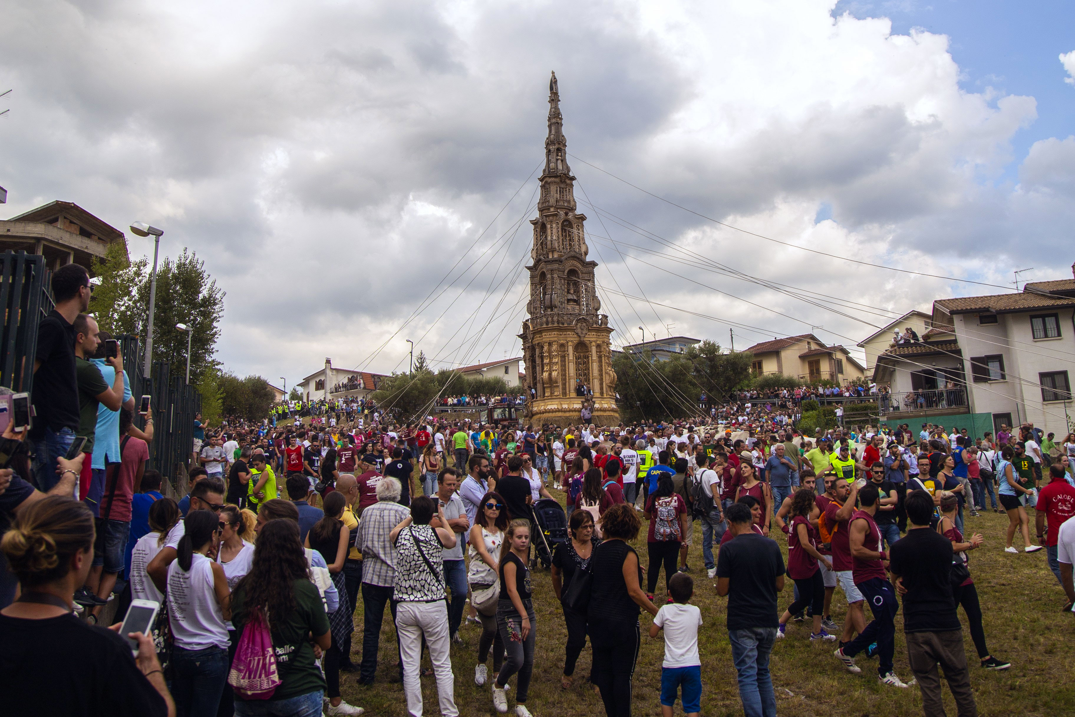A Mirabella Eclano l’oro non si estrae ma si intreccia. Qui, il sabato che precede la terza di domenica di settembre si fa lode alla Madonna con il trasporto del cd. “Carro di Paglia” che unisce fede e folklore rinnovando una tradizione identitaria che si ripete da secoli e affonda le sue radici nei riti pagani ancor prima che diventassero cristiani. La tradizione consolidatasi nell’Ottocento, ha origini antiche che si legano con il passare del tempo alla civiltà contadina: l’attuale obelisco alto 25 mt e composto da sette” registri” realizzati in paglia intrecciata a mano , deriva dalla tradizione contadina di ringraziare la Madonna per il raccolto appena concluso mediante offerte di grano che venivano portate su carretti di legno inizialmente modesti e che solo con il passare degli anni furono arricchiti anche da decorazioni artistiche. Nel tempo il Carro è diventato il simbolo identitario di Mirabella Eclano, un marchio culturale riconoscibile oltre i confini locali. Il trasporto non è solo atto devozionale ma un rito collettivo che si compie grazie al sincronismo di uomini, mezzi e animali che si coordinano realizzando un equilibrio perfetto. L’obelisco ha una struttura portante interna lignea ed è composto da registri decorati in paglia intrecciata che vengono montati in occasione della grande tirata e poi smontati e conservati nel museo ad essi dedicato che è ubicato nel Complesso monumentale di San Francesco, oggi sede del Municipio della Città. Il trasporto dell’obelisco viene affidato a centinaia e centinaia di uomini chiamati “funaioli” che muovono le grosse funi di canapa ancorate alla struttura seguendo le indicazioni di chi resta funzionalmente al suo interno garantendone l’equilibrio e scongiurandone una improvvida caduta che, secondo i detti popolari, sarebbe foriera di avvenimenti nefasti. Sei coppie di buoi concludono il bellissimo quadro d’insieme che permette, anno dopo anno, di ripetere questo antico rito che rende eterna questa tradizione.