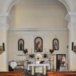 Il piano di appoggio anteriore dell'altare maggiore è realizzato in metallo con pannellature in ottone. L'area dell'altare è separata da quella dei fedeli dalla presenza di un gradino, che ne differenzia il piano di calpestio.
