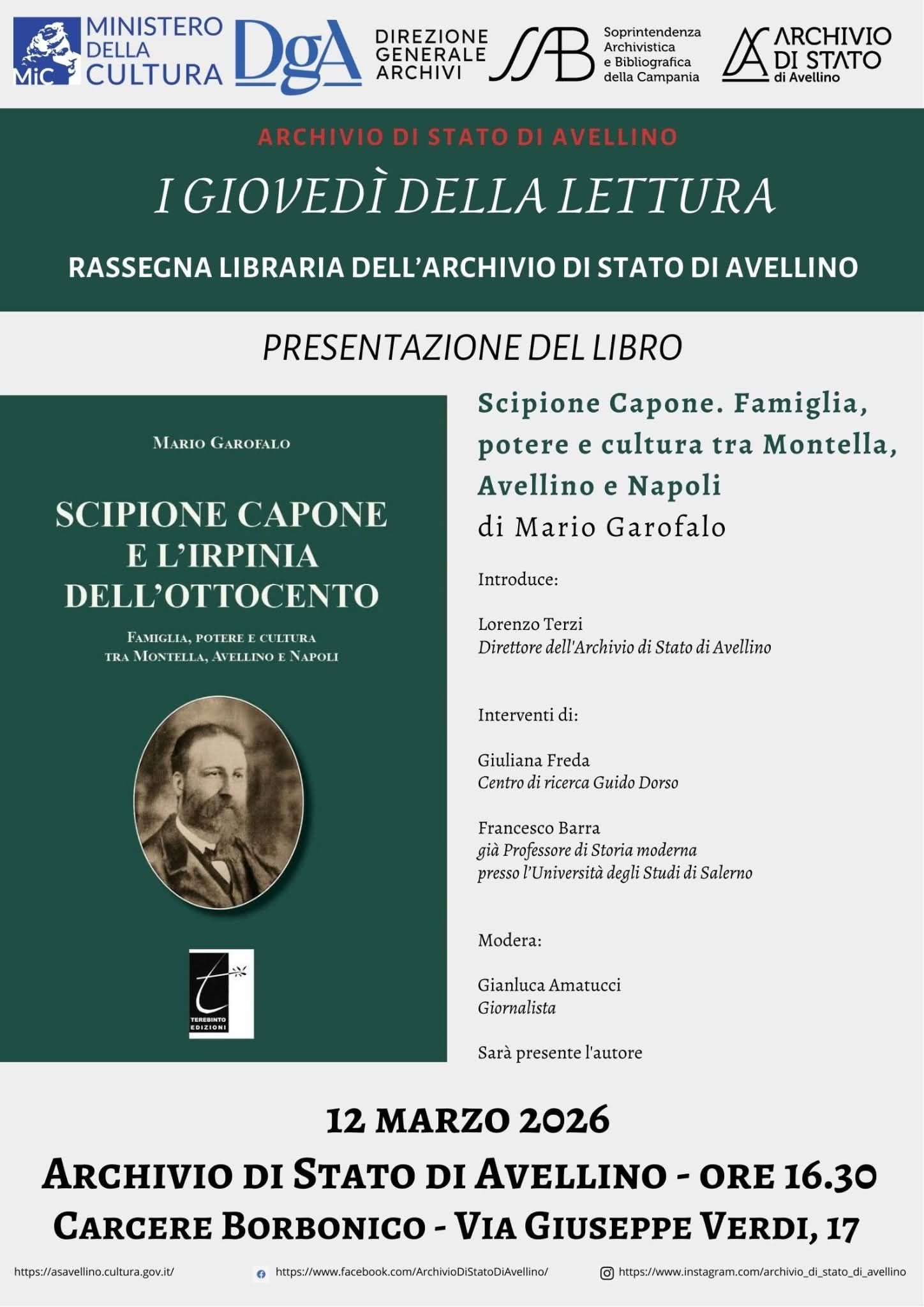 L’evento verrà introdotto da Lorenzo Terzi, direttore dell’Archivio di Stato di Avellino.