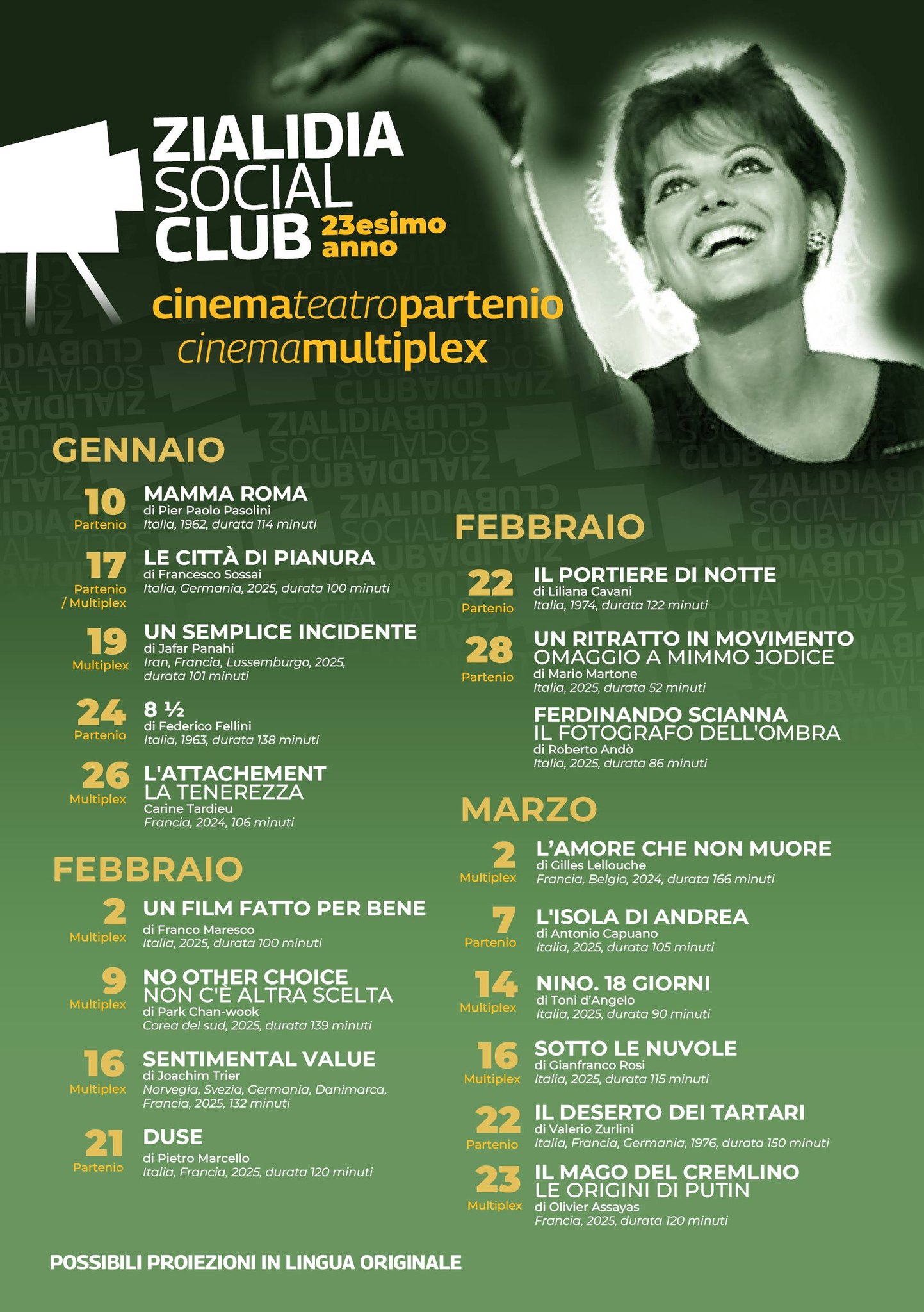 Zia Lidia Social Club celebra il suo 23°anno di attività, confermandosi come uno dei presìdi culturali più vitali del territorio. Anche per il 2026, la rassegna propone un percorso cinematografico ricco e stratificato, capace di intrecciare grandi classici, cinema d’autore contemporaneo e opere che interrogano il presente.